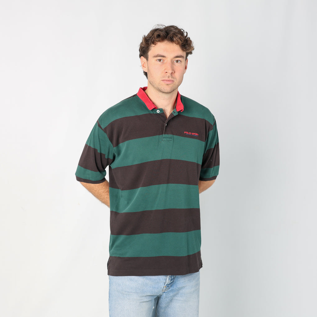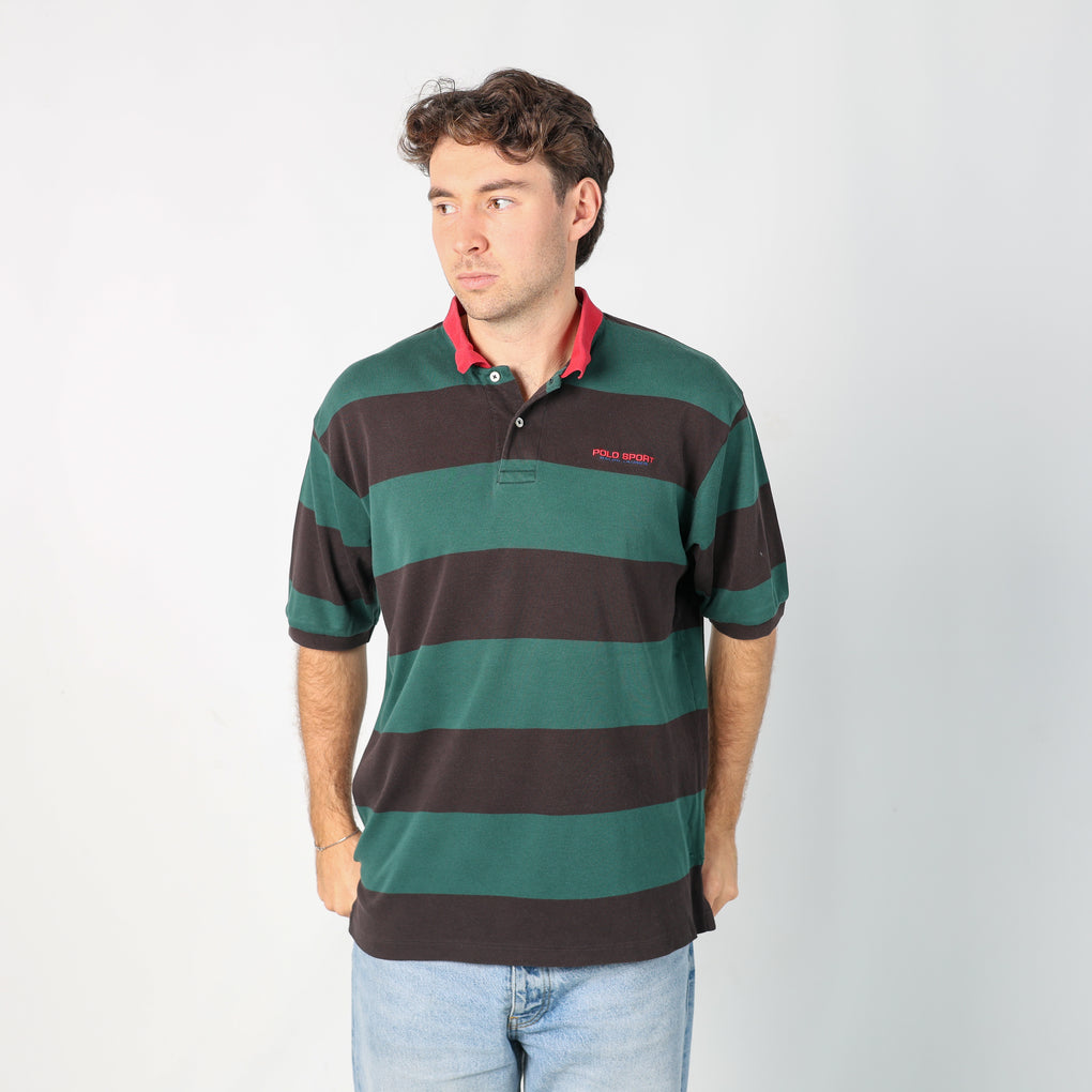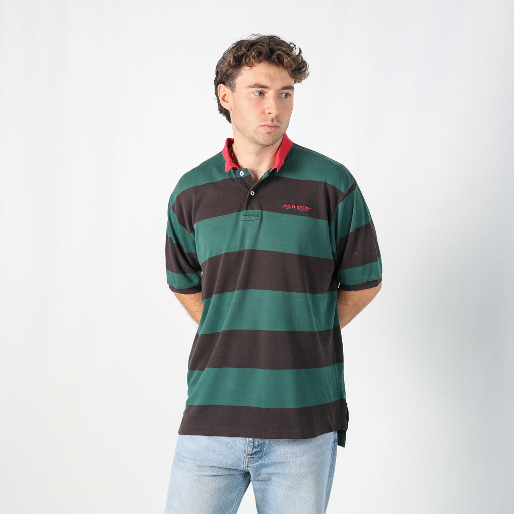 Dark Green 90s Polo Sport Ralph Lauren Striped Polo T-Shirt (L)