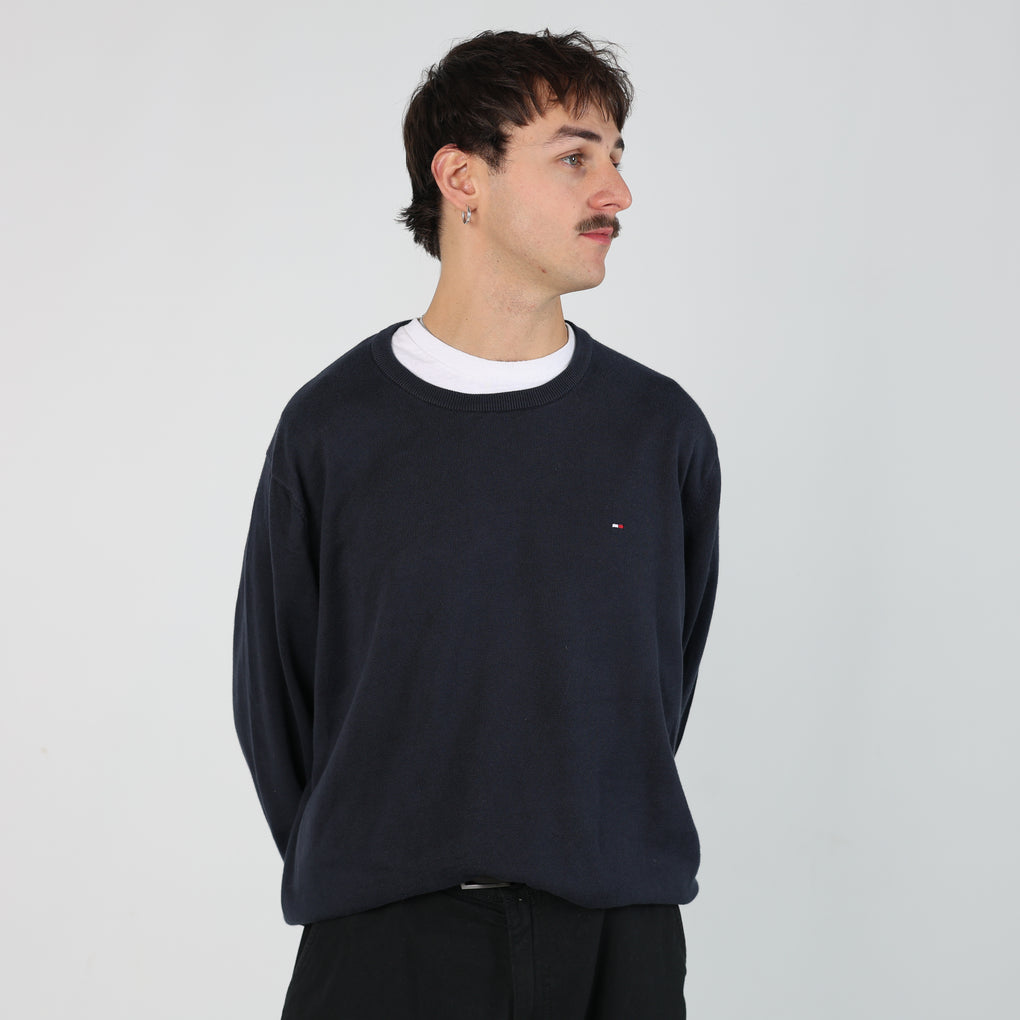 - Navy Blue 90s Tommy Hilfiger Knit Sweatshirt (XXL)