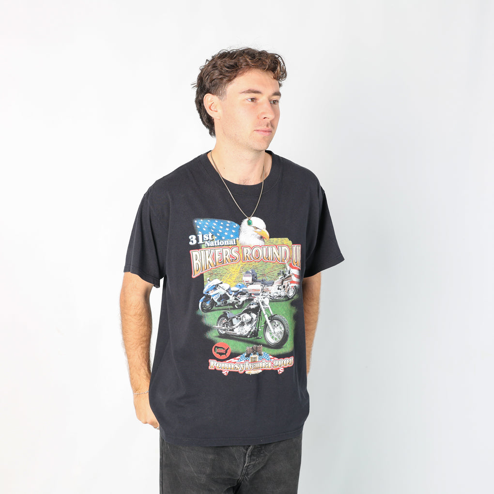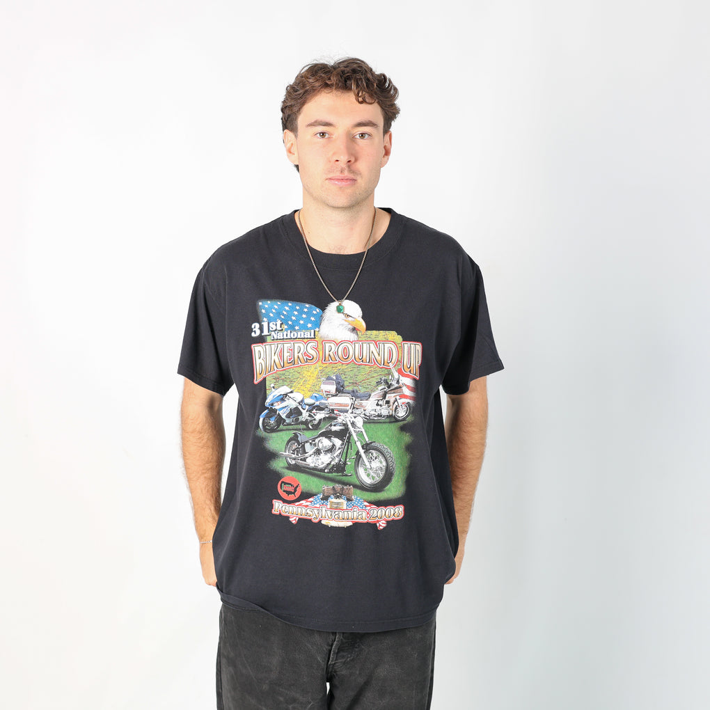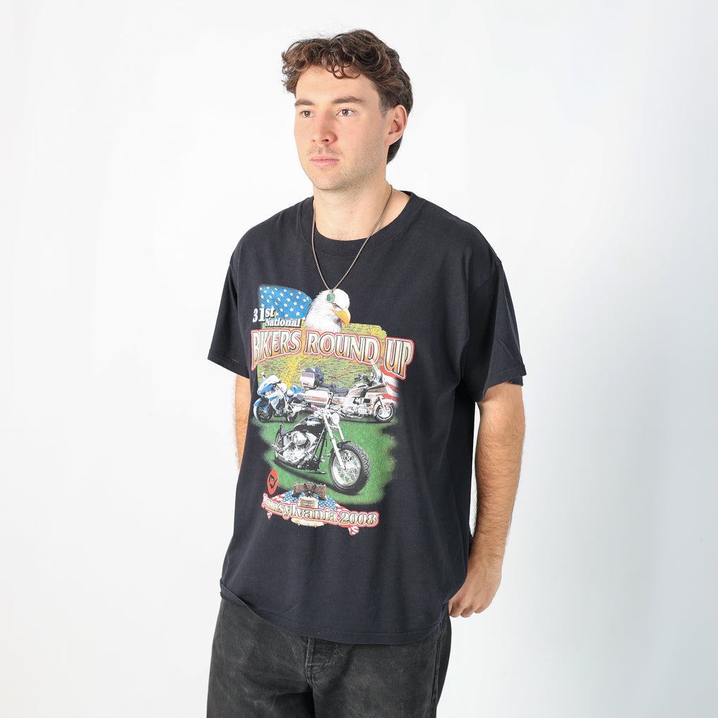 Black 90s Bikers Round Up T-Shirt (L)
