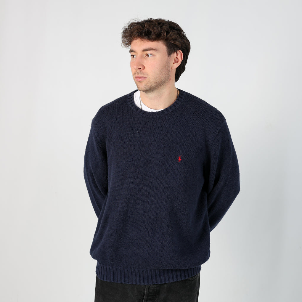 Navy Blue y2ks Polo Ralph Lauren Knit Sweatshirt (XL)