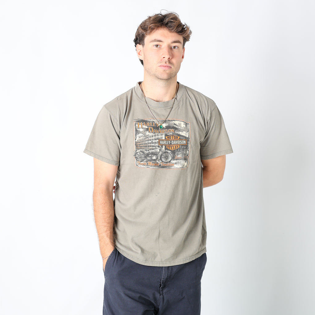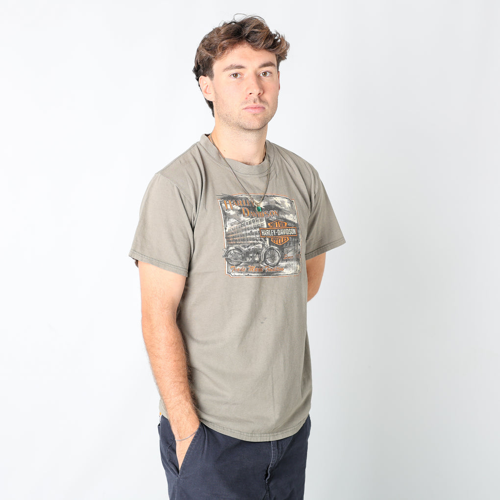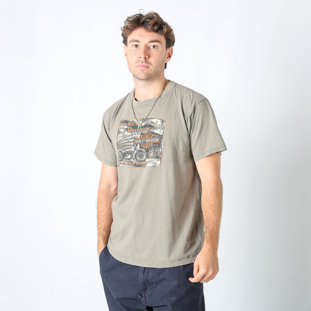 Khaki Green y2ks Harley Davidson T-Shirt (M)