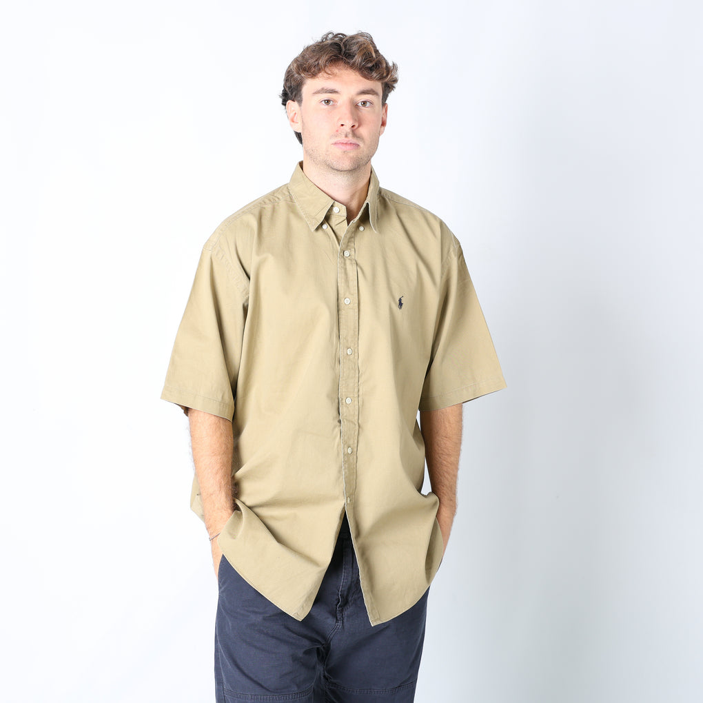 Beige 90s Polo Ralph Lauren T-Shirt (XL)