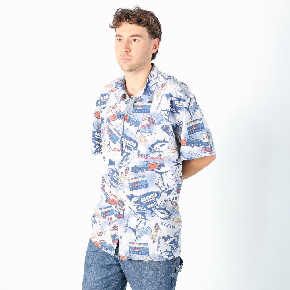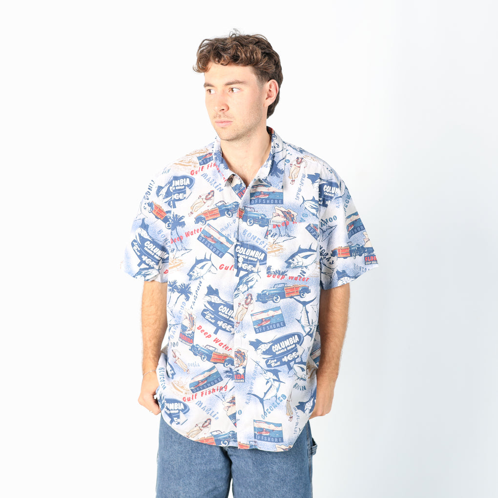 Blue 90s Columbia Short Sleeve Shirt (XL)