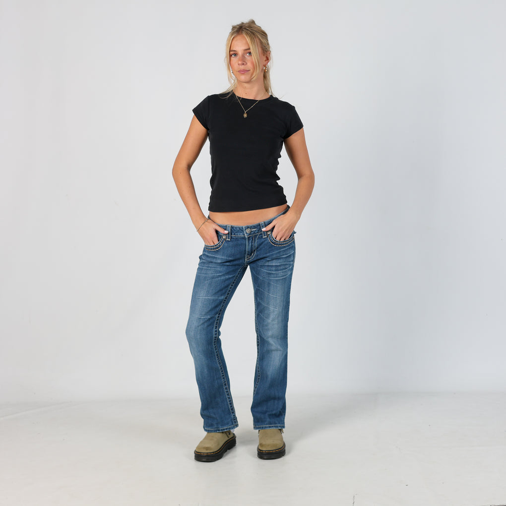 Blue y2ks Miss Me Sequin Pocket Denim Jeans Pants (30x30")
