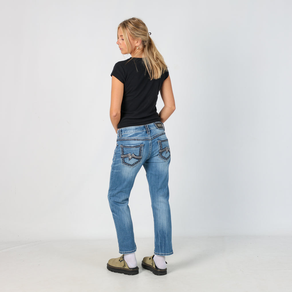 - Light Blue y2ks Miss Me Denim Jeans Pants (28x27")